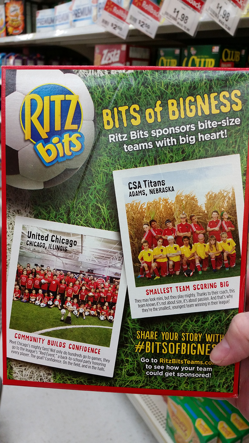We weren’t allowed to talk about it for months (which just about killed several of us, me included!!!), but then this past March arrived and BAM!, there we were…on the back of every peanut butter RitzBits box AND every pizza RitzBits box on all the shelves of ALL the grocery stores.